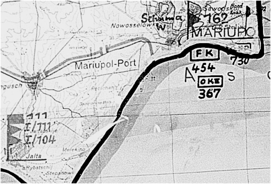 СКА-0412 и БКА-114 и 124 обстреляли Мариуполь. Погодные условия: слабый восточный ветер, с порывами до 2-3 баллов (NARA T1022-2530-00072).