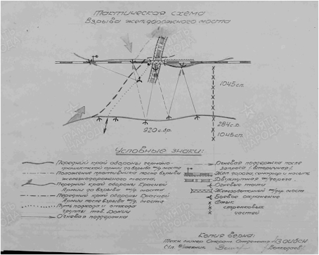 Тактическая схема взрыва железнодорожного моста-ДОТа в г. Сталинграде