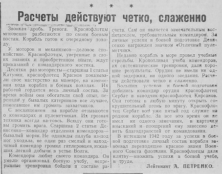 Статья из газеты «Красный флот» от 17 июня 1943 года