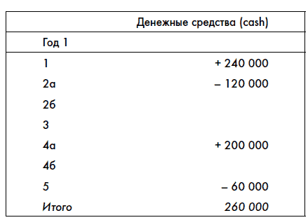 Обратите внимание, что эта операция не влияет на прибыли и убытки компании, так как эти платежи относились к затратам предыдущего года, которые уже были учтены в прибыли первого года.