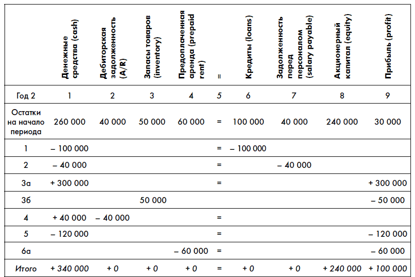 Для закрепления пройденного давайте рассмотрим операции компании АВС во втором году (можете сначала сделать это сами, а потом уже проверить себя по книге).