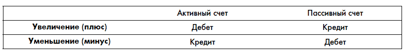 Связывая дебет и кредит с уравнением бухгалтерского баланса, можно сказать, что увеличение счетов раздела «Активы» (левая часть равенства) идет в дебет счета, уменьшение – в кредит. Для счетов раздела «Пассивы» (правая часть равенства) увеличение счетов идет в кредит счета, уменьшение – в дебет: