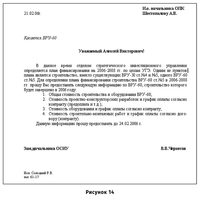 ● Информацию от подразделений запрашивайте официально, чтобы получить официальный письменный ответ (рис. 14). Если базировать оценку на неких устных ответах, часто потом при появлении вопросов или проблем в проекте человек отказывается от своего мнения или же просто оказывается, что он неправильно понял вопрос.