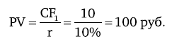 Предположим, что начиная с 6 года и в течение неопределенно длительного срока проект будет приносить нам доход в размере 10 руб. в год. В этом случае его терминальная стоимость может быть рассчитана с помощью формулы перпетуитета: