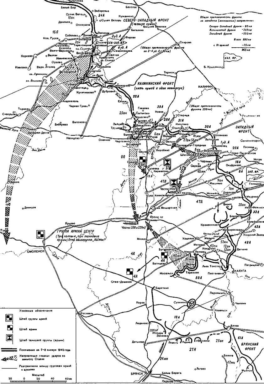 Планы вермахта на московском направлении зимой 1941/42 гг. определялись «Директивой ОКХ относительно задач сухопутных войск на Востоке» от 8 декабря 1941 г.: «Группа армий «Центр» после завершения операций в районе Москвы должна так эшелонировать свои войска, чтобы быть в состоянии отразить удары русских против участка фронта, выдвинутого в направлении Москвы, и против своего левого фланга. Для защиты растянутого фланга группа должна предусмотреть приведение в боевую готовность резервов в районе южнее Осташкова».