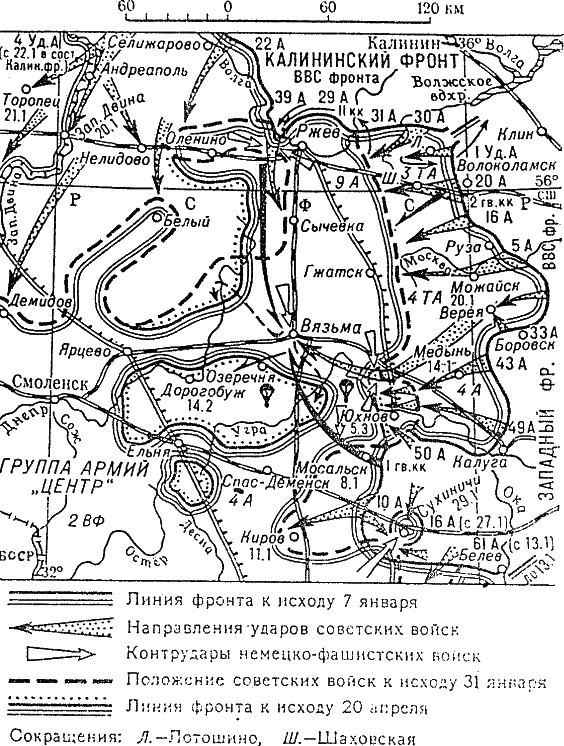 Схема 4. Ржевско-Вяземская наступательная операция 8 января—20 апреля 1942 г.