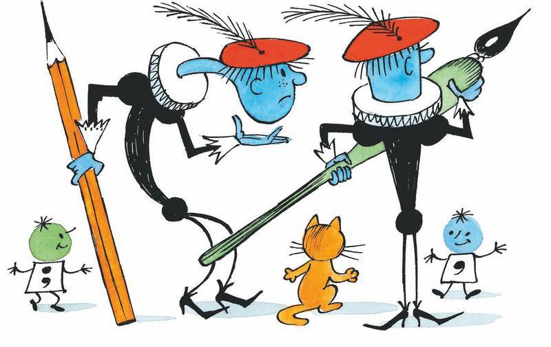 Глагол снова взмахнул линейкой, и точек сменили человечки, на платьицах которых были вышиты две запятые. Они взялись за ручки и спели: