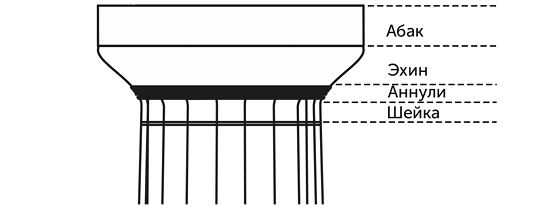 Эхин Парфенона отделен от стержня колонны пятью легкими кольцевыми ободками (аннули, ремешки), шейкой и легким кольцевым врезом (гипотрахелием), от верха здания – квадратной каменной плитой (абаком) (рис. 20). Без этих кольцевых ободков и врезов терялась бы граница между стволом колонны и ее капителью, утрачивалась бы ясная выразительность упругой формы эхина, и выпуклость последнего сливалась бы с вогнутостью под ним в лишенную требуемой выразительности волнообразную кривую. Назначение абака иное: он составляет переход от округлых и упругих форм колонны к прямолинейной геометричности расположенных над нею каменных перекладин. По своим размерам абак принадлежит колонне; по своей прямоугольной форме он начинает группу новых форм наверху. В архитектуре постоянно приходится встречаться с художественной необходимостью промежуточных подробностей и деталей, уничтожающих разрыв в месте стыка разнородных форм. У второстепенных мастеров сплошь и рядом наблюдается недостаток художественного чутья в этом отношении.