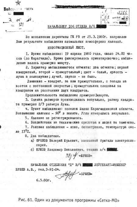 Документ, написанный на следующий день после наблюдения, сохранился. Прошу вас не удивляться расхождениям между описанием Игоря Синицына и текстом рапорта: Синицын восстанавливал содержимое папки по памяти спустя 25 лет!