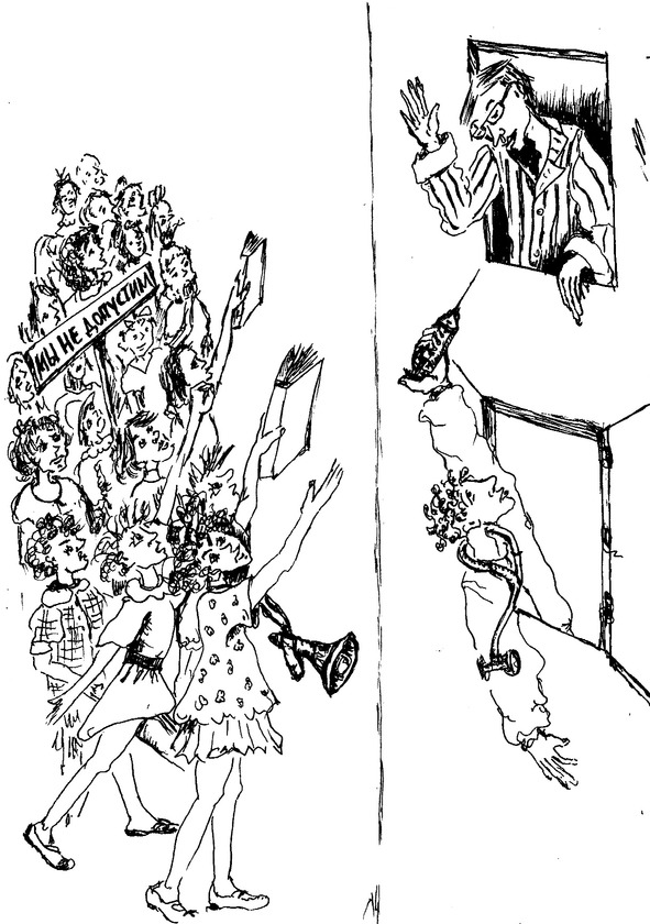 По счастью, дело кончилось миром. Всезнайка послал Напильника и Молотка, которые на машине объехали библиотеки и книжные магазины города и изъяли злосчастное произведение. Удовлетворенные демонстрантки разорвали все экземпляры в клочки и разошлись по домам. Некоторые даже извинялись, что наделали столько шума.