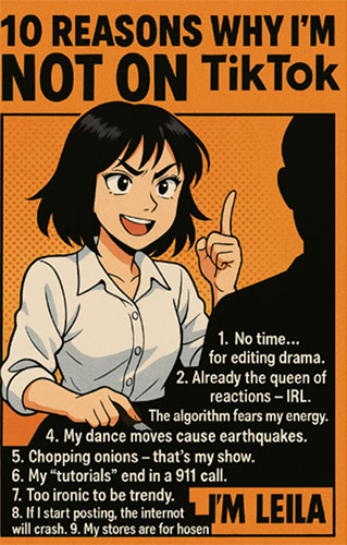 – Могу и продолжить. Я боюсь, что кто-то из знакомых найдёт мой TikTok, где я танцую под Britney Spears, а моих детей в школе будут дразнить. По сути – я критик. Диванный. Чемпион внутреннего сарказма. Я могу разобрать чужой контент по косточкам. Но как только дело доходит до своего – включается стыд, страх, и внезапно я вспоминаю, что давно не мыла плиту.