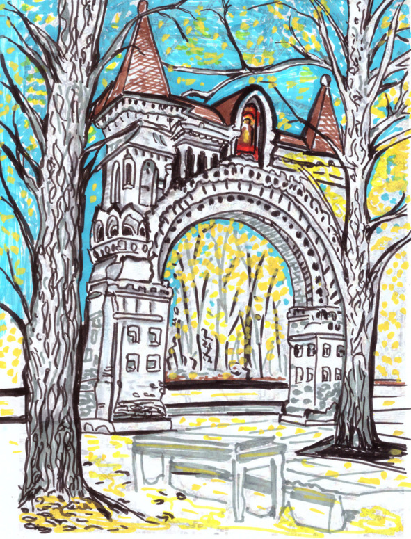 Сегодня мы спустимся к «Ладье» по улице Осипенко, – одном из знаковых мест советской эпохи. От старых времен здесь остались только ворота Свято-Никольского монастыря.