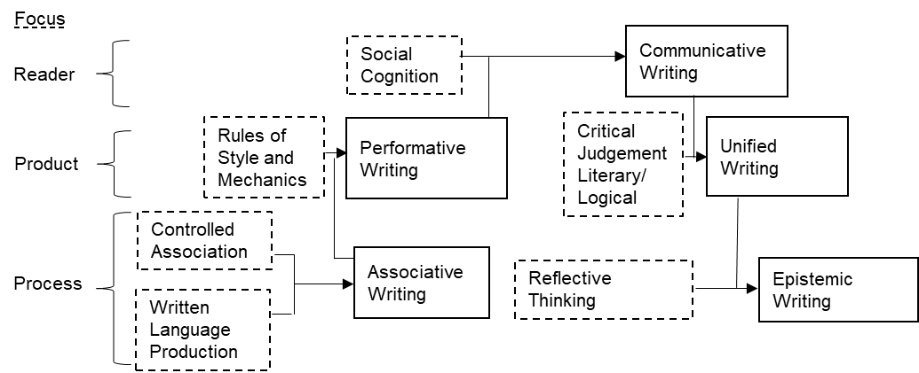 Bereiters Modell zeigt, dass die Schreibentwicklung nach dem Ende der Schulzeit nicht abgeschlossen ist. Dieses Schreibentwicklungsmodell sollte daher nicht linear aufgefasst werden, sondern fokussiert diverse Parameter wie den Prozess, das Produkt oder den Leser und setzt sie zu kognitiven Entwicklungsschreibphasen in Beziehung. Diese Orientierung initiiert diverse Schreibmodi – wie das assoziative, performative, kommunikative oder das epistemische Schreiben. Dabei werden verschiedene kognitive Aufgaben gelöst: