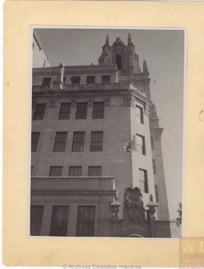 Figura 2: Impacto de obús en la fachada de la Compañía Telefónica Nacional de España que da a Valverde. Ejemplo de la cantidad de obuses que le afectaron durante la contienda. Fuente: AGA 33 F 04051-54263-001.