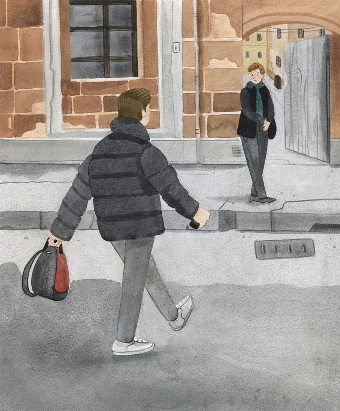 Она, в теплой кофте, стояла около подъезда. Было заметно, что она постаралась подготовиться к встрече: на лице был макияж, волосы уложены. Я подошел к ней, сказал «привет» и попытался обнять, но вышло очень неловко. Тогда я спросил, как она поживает, и Татьяна ответила, что у нее все хорошо. Потом поинтересовалась, как прошло мое путешествие, и я сказал, что оно показалось мне бесконечным.