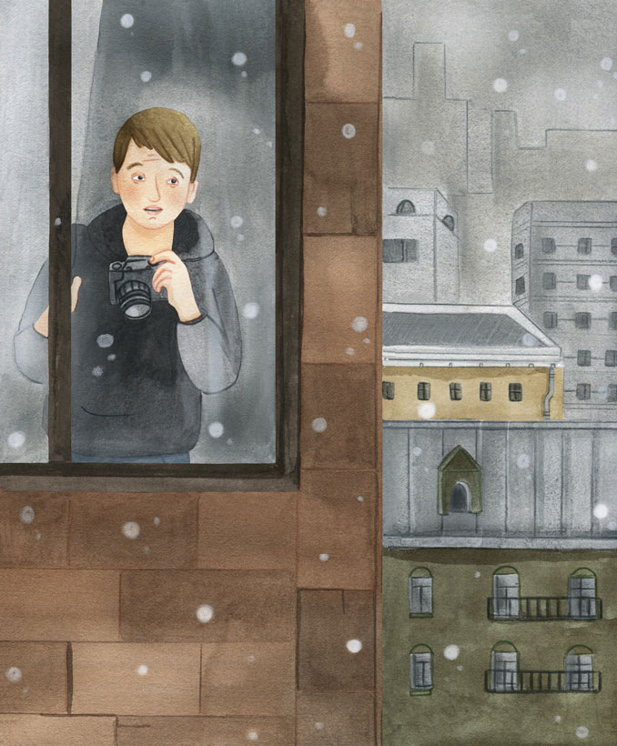 В первой половине дня я гулял недалеко от дома, где жил. Было тихо и холодно. Шел снег, и я сделал несколько снимков, чтобы отправить их домой. Я постоянно поддерживал контакт с мамой и папой, которым мои фотографии и видео были очень интересны.
