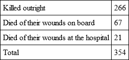 Loss in the Battle and from Wounds – Fatality of the locked Jaw – Treatment of it – Some Ships more subject to it than others – Different from other Cases of Tetanus – It is not cured by the Removal of the Part – It may come on after the Part is cured – Effect of Climate in producing it – Accidents from the Wind of a Ball – Accidents from the Explosion of Gunpowder – Means of preventing them – General Observations on Sores and Wounds.