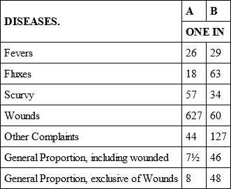 B Proportion of those that died in relation to the Numbers of Sick or wounded.