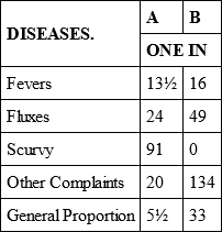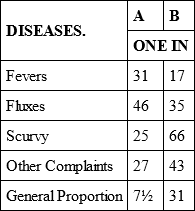 In the course of this passage the dysenteries came to prevail over the fevers, as we have found to be commonly the case at sea. It appears by the former table, compared with the next, that the mortality in fevers was much the same, and that in the dysentery it was greater than while the fleet was at Jamaica. This does not argue, however, that the diseases were equally malignant, but was owing to the want of an hospital, and of those comforts of diet which the sick enjoyed on board while in harbour. This last was particularly felt in the dysenteries, in the cure of which more depends upon diet than in most other diseases. In all the calculations of mortality on board of ships, if any have been sent to the hospital, they are to be deducted from the number; and these make a greater difference in the mortality on board than their numbers simply would indicate; for only the worst cases, and those therefore who were most likely to die, used to be sent to the hospital. But as the fleet was at sea during the whole of this month, no allowance of this kind is to be made.