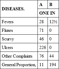 In the course of the three months above mentioned, we see the two squadrons approaching to each other, in point of health, till they became pretty equal and similar; and the new squadron became even somewhat more healthy than the old.