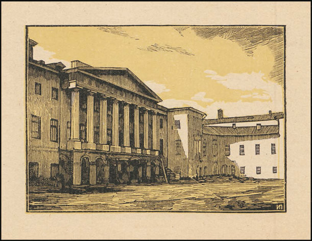 Октябрь смел пристройки, выросшие в первом десятилетии двадцатого века, и перед глазами – розовый дворец с белыми стройными колоннами, с лепными работами. На фронтоне белый герб республики сменил золоченый графский герб Разумовских. В этом дворце – Музее Революции – всякий может теперь проследить победное шествие русской революции, от декабристов до Ленина.