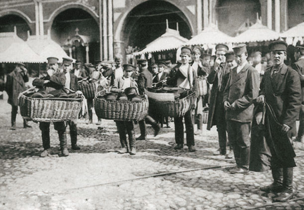 Были нищие, собиравшие по лавкам, трактирам и торговым рядам. Их «служба» – с десяти утра до пяти вечера. Эта группа и другая, называемая «с ручкой», рыскающая по церквам, – самые многочисленные. В последней – бабы с грудными детьми, взятыми напрокат, а то и просто с поленом, обернутым в тряпку, которое они нежно баюкают, прося на бедного сиротку. Тут же настоящие и поддельные слепцы и убогие.