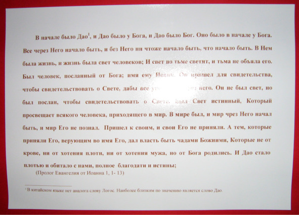 «В начале было Дао…» (пример трудностей перевода Евангелия на китайский язык). В коридоре Московской духовной академии, г. Сергиев Посад, 2006 г. Фото В. Е. Гиндер.