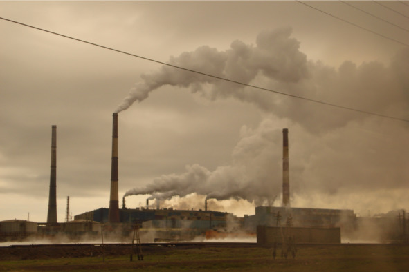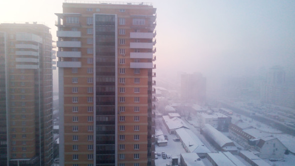 Красноярск во время режима неблагоприятных метеорологических условий («черного неба»). Декабрь, 2017 г. Фото В. Е. Гиндер.