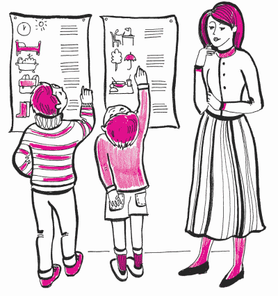 Выготский нашел, что ребенок легче и быстрее учится организовывать себя и свои дела, если на определенном этапе ему помочь некоторыми внешними средствами. Ими могут быть картинки для напоминания, список дел, записки, схемы или написанные инструкции.