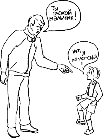 Вот родитель в запальчивости бросает сыну: «Ты плохой мальчик!», на что малыш, топая ногой, возражает: «Нет, я хо-ло-сый!»