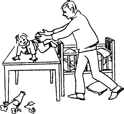 «Приходит ко мне на консультацию отец годовалого ребенка и среди прочего рассказывает о таком случае. Его 11-месячный сын был оставлен в детской кроватке, рядом с которой находился стол. Малыш как-то умудрился перелезть через спинку кровати на стол, где его и застал отец, вошедший в комнату. Ребенок, покачиваясь на четвереньках, победоносно сиял, а папу охватил страх. Он подбежал к малышу, резко схватил его, водворил на место и строго пригрозил пальцем. Ребенок горько заплакал и долго не мог успокоиться».
