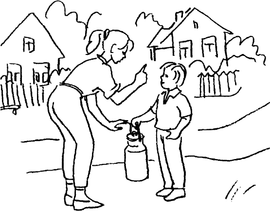 Мама отправляет четырехлетнего мальчика за молоком. Надо пройти несколько домов, деревенская улица неровная, под горку. Бидон велик для мальчика, достает почти до земли. Но мама, воспитывая в нем «взрослость» и ответственность, строго предупреждает: «Смотри, не пролей!» Мальчик возвращается в унынии, волоча по земле почти пустой бидон. Мама в ярости.