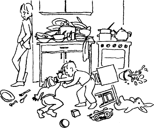 Вы, конечно, легко найдете другие примеры того, как в повседневной жизни оградить себя и своего ребенка от излишних напряжений. Некоторые родители ставят временные заграждения на окна, убирают повыше все бьющееся, выносят из комнаты дорогую мебель, чтобы ребенок мог свободно двигаться, наклеивают в его комнате дешевые обои обратной стороной, чтобы он мог на них рисовать.
