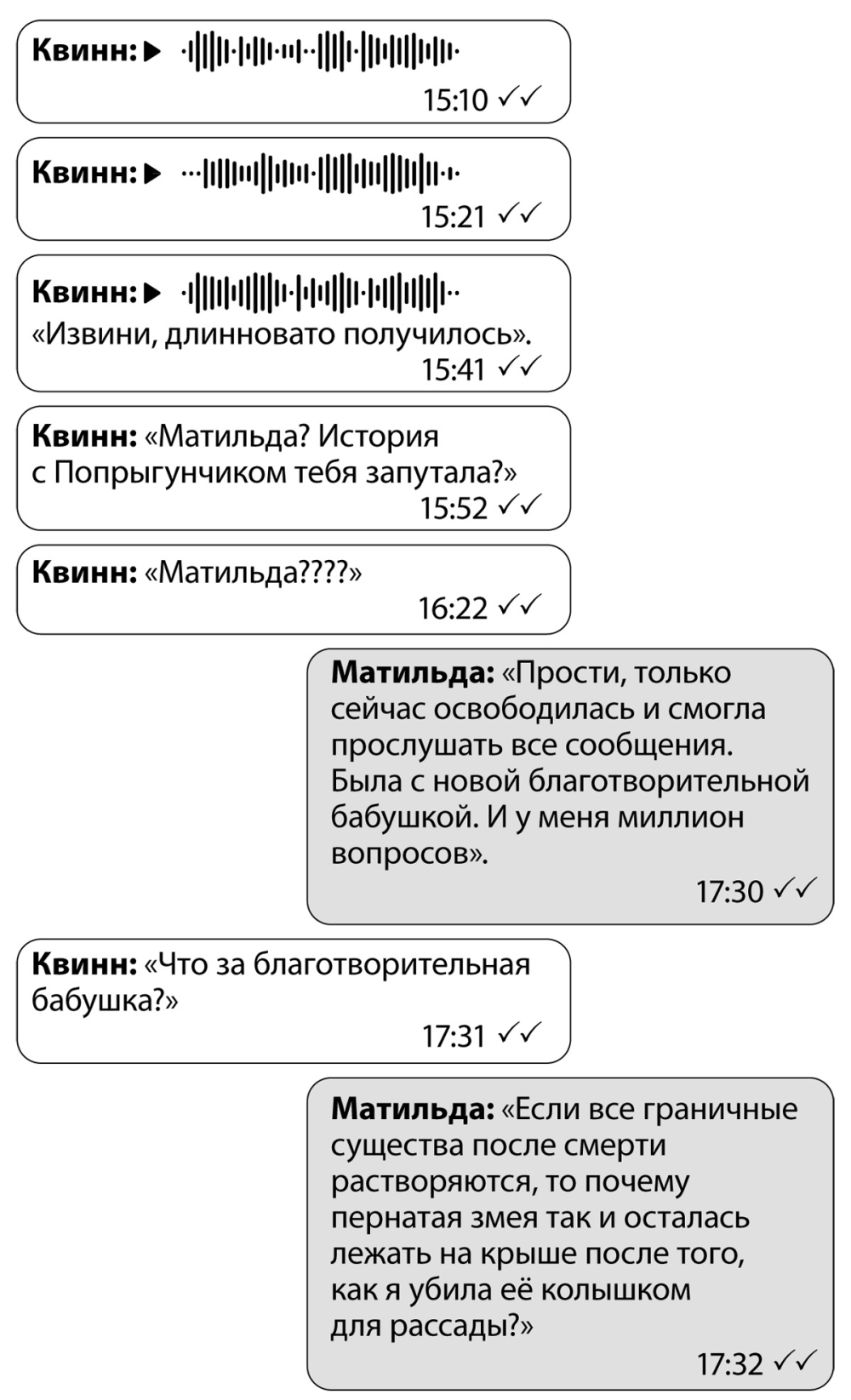 – «Я только быстро сброшу эту малявку с крыши, дорогой, и мы сможем продолжить целоваться», – продолжала Матильда, довольно удачно пародируя голос Жанны. – А потом Северин такой: «О да, дорогая, сделай это, а я пока постою здесь, весь такой мужественный и сексуальный, одной рукой буду открывать порталы, а второй вызывать мерзких пернатых змей…» – Она запнулась и испуганно посмотрела на меня. – Что такое? Что случилось?