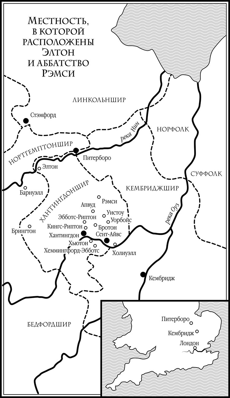 Среди имущества, которое аббатство получило через несколько лет после смерти его основателей, были поместье и деревня Элтон. Происхождение названия поселения, которое выросло рядом с исчезнувшими Дуробривами, не вполне ясно. Суффикс tun или ton («ограда» или «забор») со временем приобрел более широкое значение – «усадьба», затем «скопление усадеб» или «деревня»; суффикс inga в сочетании с личным именем обозначал последователей или родственников вождя либо правителя. Название «Элтон» первоначально писалось как «Этелингтон» или «Эйлингтон», и его расшифровывали как «деревня Эллы», либо «деревня Этелингов», либо «деревня людей Этели»35.