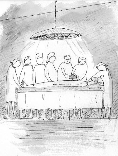 Вскоре появилась медсестра со списком жертв в руках и стала поимённо приглашать в операционное отделение. Меня вызвала последним. Оставляю куртку и шапку Тане и иду в хвосте всех, как на закланье, знакомиться с проектом «операция» и с тем, как он реализуется в этом госпитале.