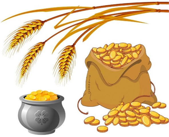 — Ладно! — с досадой кричит купец. — Не хочешь поделиться пшеницей, тогда продай её мне! Я богатый, я тебе за пять мешков пшеницы – пять золотых зёрен дам!