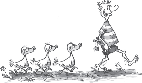 Oft strolchte ich auf der Wiese umher, die an das Haus grenzte und zu der auch ein Teich gehörte. Der Teich versorgte die Kühe mit dem notwendigen Trinkwasser, und die Enten schnäbelten im Wasser nach allerlei Essbarem. Tauchte ich im Sommer hier auf und ging dann in Richtung Hof, verließen alle Enten schlagartig den Teich und folgten mir im Entenmarsch. Sie hatten sich gemerkt, dass nun bald der Tisch für sie reich gedeckt werden würde, denn auf dem Hof angekommen, eilte ich zum Getreidespeicher, um mit reichlich Körnern zurückzukommen. So wurde ich zum Liebling der Enten.