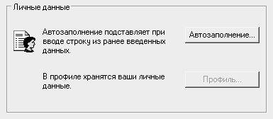 В данной группе параметров можно с помощью системного реестра сделать недоступной кнопку Профиль. Для этого в разделе реестра HKEY_CURRENT_USER\ Software\ Policies\ Microsoft\Internet Explorer\Control Panel необходимо создать параметр Profiles типа DWORD и присвоить ему значение 1. При этом используется следующий reg–файл: