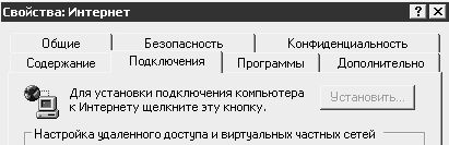 После импорта данного reg–файла в реестр кнопка Установить на вкладке Подключения будет заблокирована (рис. 2.66):