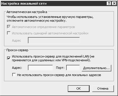 Если на вкладке Подключения нажать кнопку Настройка LAN, то на экране отобразится окно Настройка локальной сети, изображенное на рис. 2.67.