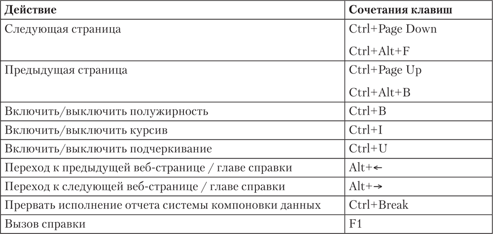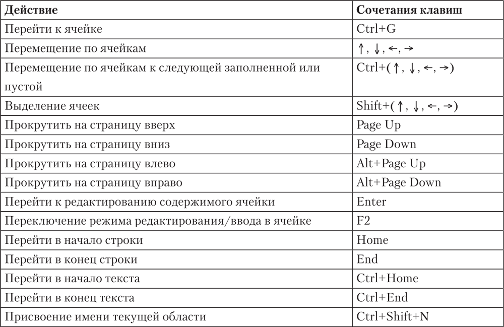 Таблица 1.6. Сочетания клавиш, предназначенные для работы с табличными документами