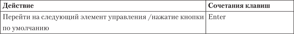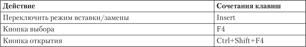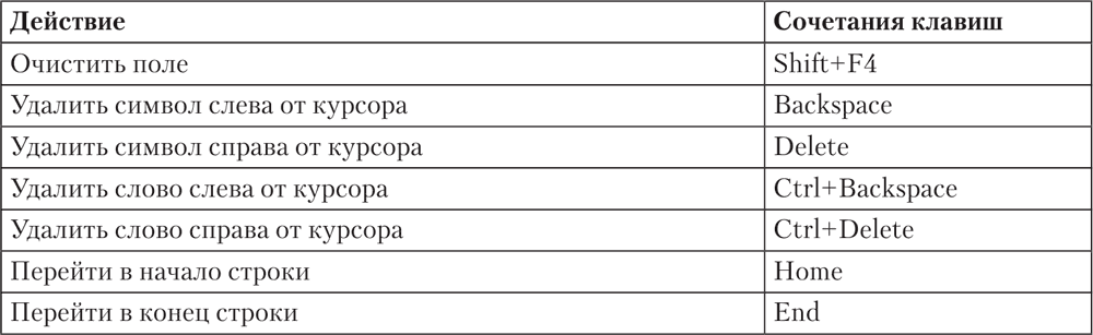 Таблица 1.5. Сочетания клавиш для работы с полями ввода в окнах редактирования