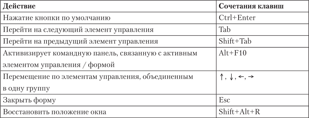 В данном разделе приведен перечень сочетаний клавиш, которые наиболее востребованы у пользователей (табл. 1.1–1.7).
