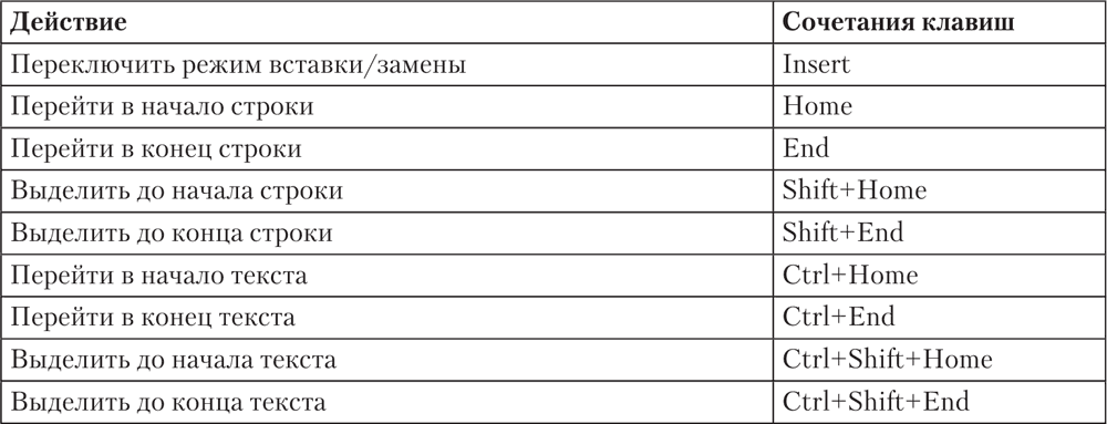 Таблица 1.7. Сочетания клавиш, предназначенные для работы с текстовыми документами