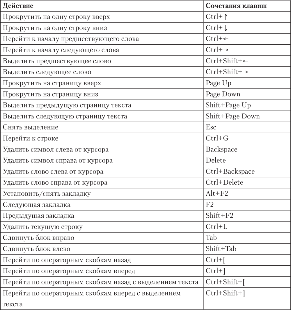 Таблица 1.3. Сочетания клавиш для работы в окне редактирования