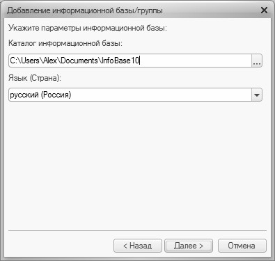 Для перехода к следующему этапу нажмите кнопку Далее. При создании новой информационной базы на экране отобразится окно, которое показано на рис. 1.3.