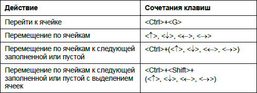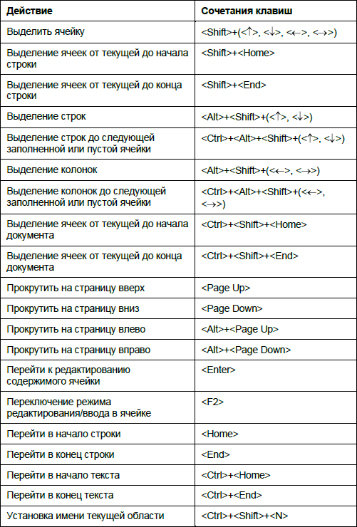 Таблица 1.6. "Горячие" клавиши, предназначенные для работы с табличными документами