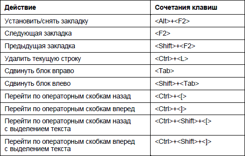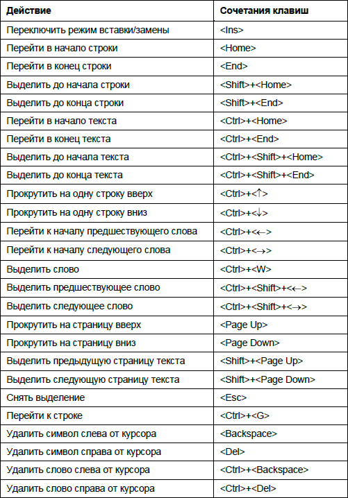 Таблица 1.3. "Горячие" клавиши для работы в окне редактирования