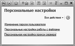 Персональные настройки пользователя включают в себя пароль доступа, параметры работы с файлами и параметры прокси-сервера (если применяется такой вариант для соединения с Интернетом). Для перехода в данный режим работы нужно на панели навигации раздела Органайзер щелкнуть на ссылке Персональные настройки. В результате откроется окно, изображенное на рис. 3.1.